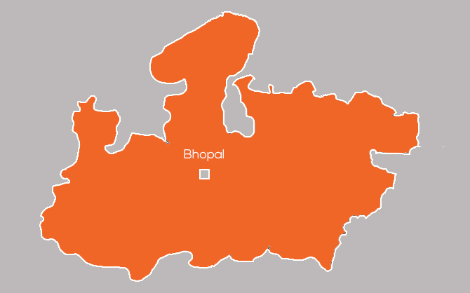 Madhya Pradesh, is a state in central India. Its capital is Bhopal & the largest city is Indore. Nicknamed the "heart of India" due to its geographical location in India, Madhya Pradesh is the second-largest state in the country by area. With over 75 million inhabitants, it is the fifth-largest state in India by population. It borders the states of Uttar Pradesh to the northeast, Chhattisgarh to the southeast, Maharashtra to the south, Gujarat to the west, and Rajasthan to the northwest.