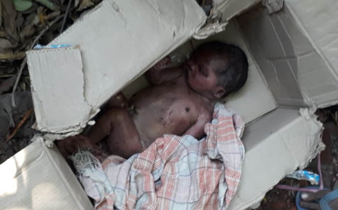 क्या हुआ - एक नवजात शिशु को गत्ते के डिब्बे में पैक करके करमाटांड थाना क्षेत्र के विद्यासागर रेलवे स्टेशन के पास छोड़ दिया गया। यह शिशु एक लड़का था। उसकी गर्भनाल भी उसके साथ ही लगी थी। इसे कब छोड़ा गया, इसे लेकर प्रत्यक्षदर्शियों से लेकर पुलिस और मीडिया