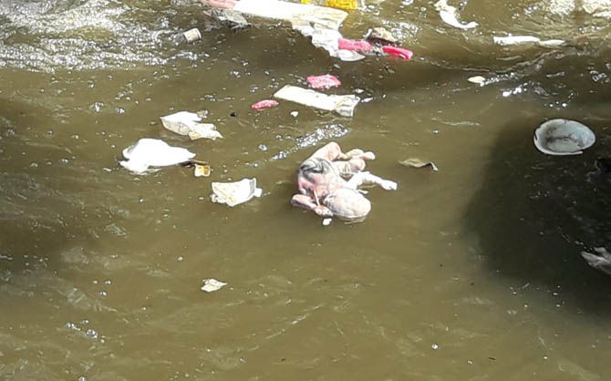 में नवजात शिशु बहता हुआ नजर आया। जब तक लोग उसे करीब से देख पाते, या पकड़ पाते, वह