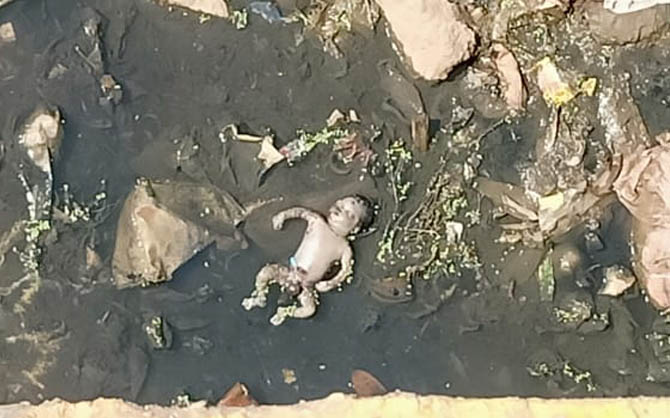 मिला, नदी कम, नाला ज्यादा नजर आ रहा था। शिशु की तस्वीर काफी ऊपर से ली गई है, लेकिन