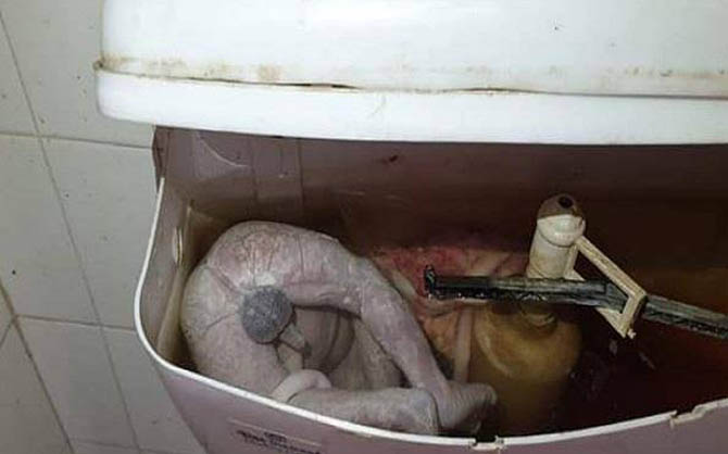 यह शव एमरजेंसी के शौचालय के फ्लश टैंक में ठूंसा गया था। गर्भनाल भी शिशु से अटैच थी।