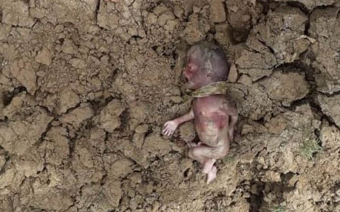 खरोंचों, चोटों और जानवरों के काटने के निशान भी थे। बच्चा पॉलीथिन में पैक था, जो