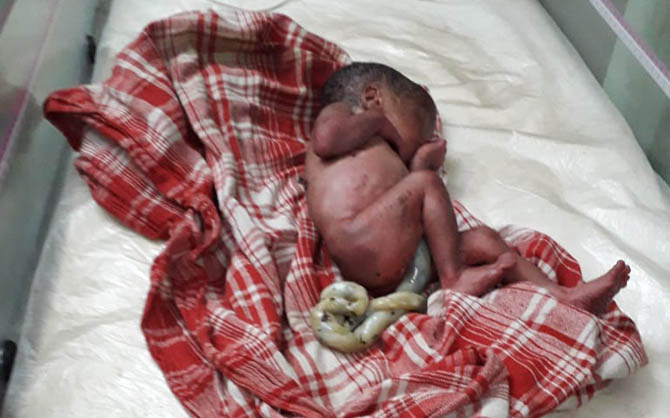 रात 11 बजे के करीब बच्चे को अस्पताल में ले जाया गया, जहां उसकी नाभि काटी गई और उस पर