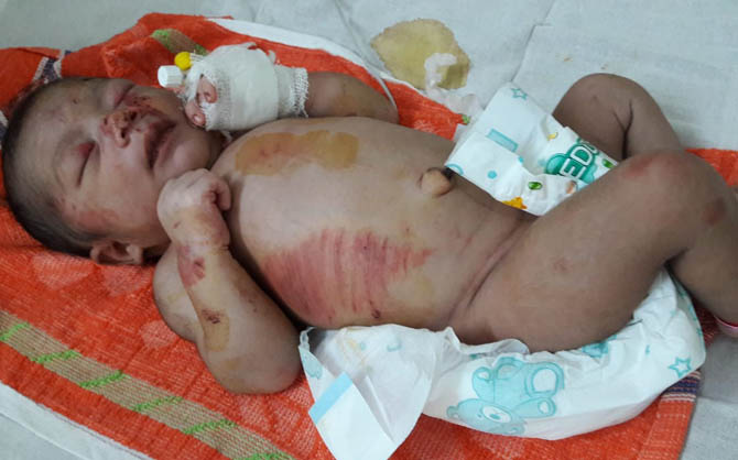 चोटों के निशान थे। बच्ची खून से सनी थी। जहां बच्ची मिली, वहीं पास में प्लेसेंटा भी