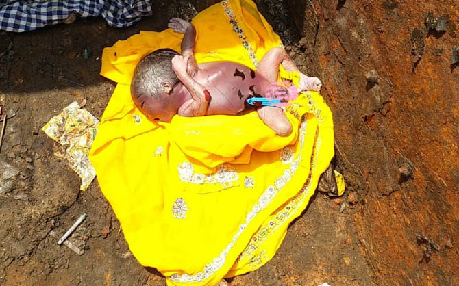 लोग बच्चे को डस्टबिन में डालकर चले गए।