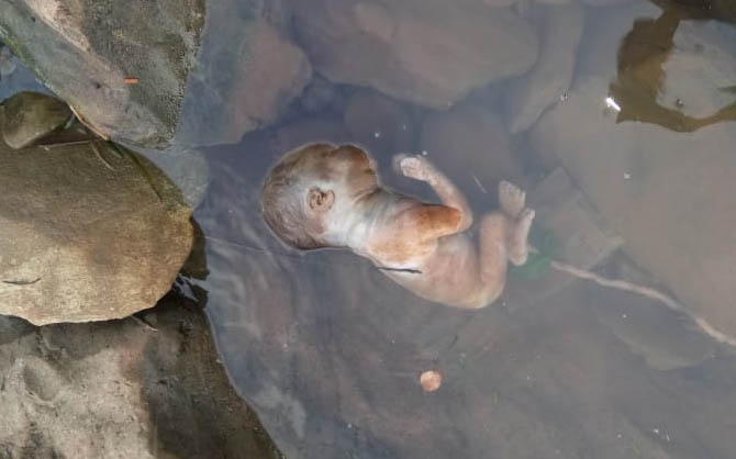 एक नवजात बच्ची का शव बोरदा पुल के पास पानी में तैर रहा था। उसके साथ गर्भनाल भी लगी