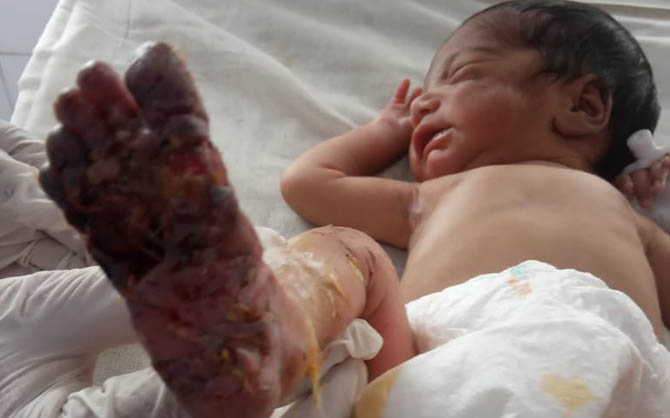 नायडू अस्पताल इलाहाबाद में बच्ची को एडमिट करवाया गया। अभी भी बच्ची वहीं एडमिट है। वह अपने पैर की तीन उंगलियां खो चुकी है। उसका वजन शुरुआती पौने दो किलो से भी कम हो चुका है। उसकी स्थिति अभी भी क्रिटिकल बनी हुई है।
