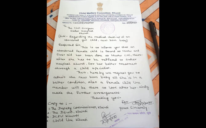 के उद्देश्य से तीन दिन तक अस्पताल में रखने के निर्देश दिए गए हैं। उसके बाद बच्ची को रांची स्थित स्पेशल एडॉप्शन एजेंसी भेज दिया जाएगा।" -
